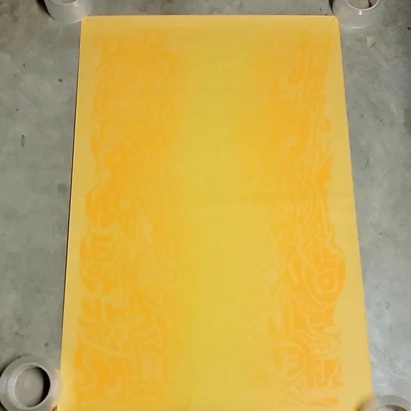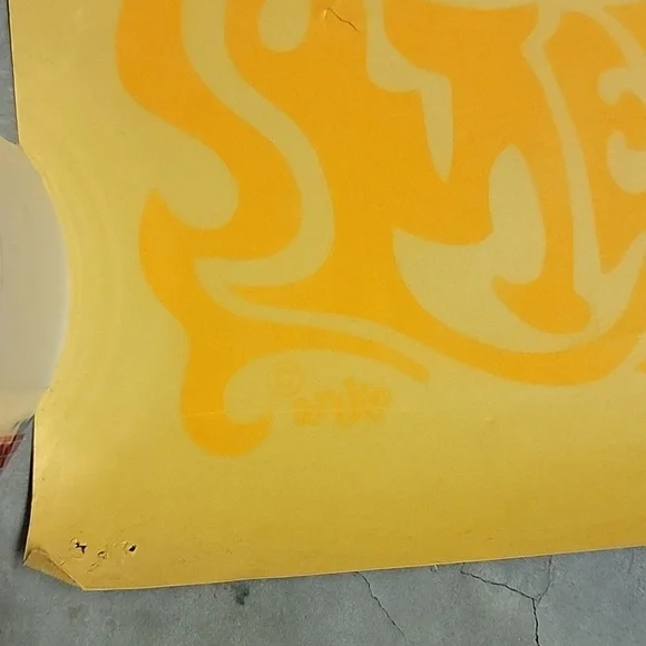 hard to capture a photo in normal light, but I can even imagine how crazy this would look under black light . does have holes, tape, bends, folds, and rolls from age and years of waiting for the next forever home. measures about 35x23 inches. currently in a smoke-free home but......it comes from the straight '60s/70s so who knows past life. can't find really anything else like this so open to offers.